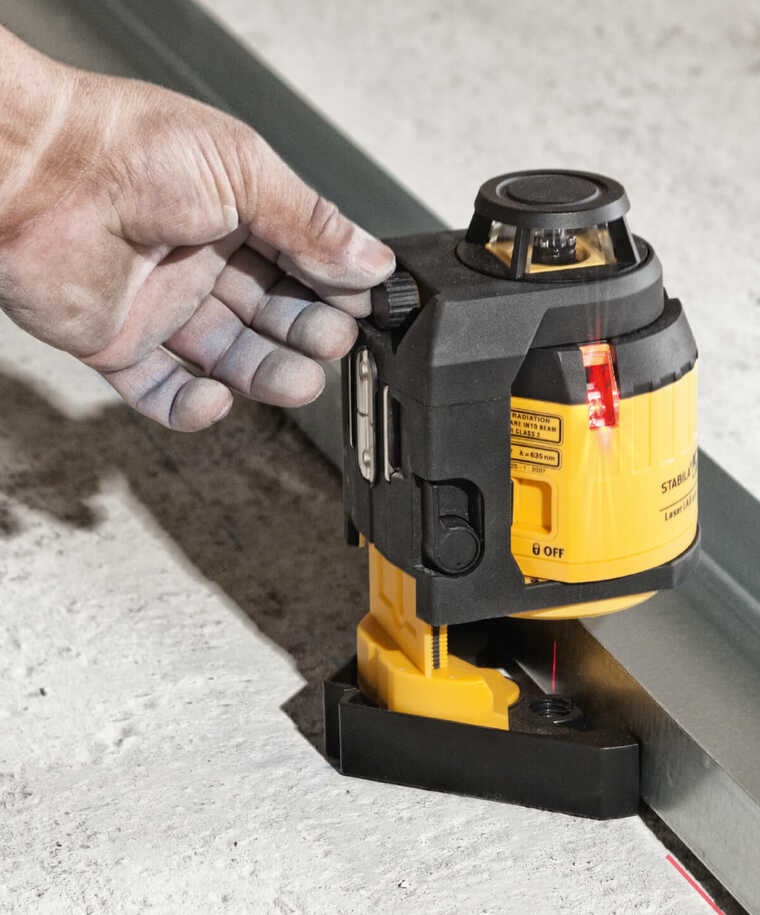 Stabila Laser sind höchst präzise Messinstrumente für Bau und Kartographie, für Heimwerker, Handwerker und den industriellen Einsatz. Die Bodenlinien-, Kreuzlinien- oder Punktlaser können Sie mit den verschiedenen Gewindeadaptern und Adapterschrauben nachrüsten. Ebenso ist das standfeste Baustativ ausdrücklich zur Befestigung des Laserwerkzeugs geeignet. Die Füße und Befestigungen des Kurbelsäulen-Baustativs sind so konstruiert, dass jeder Stabila Laser stufenlos auf die nötige Arbeitshöhe gebracht und anschließend sanft wieder abgefangen wird.