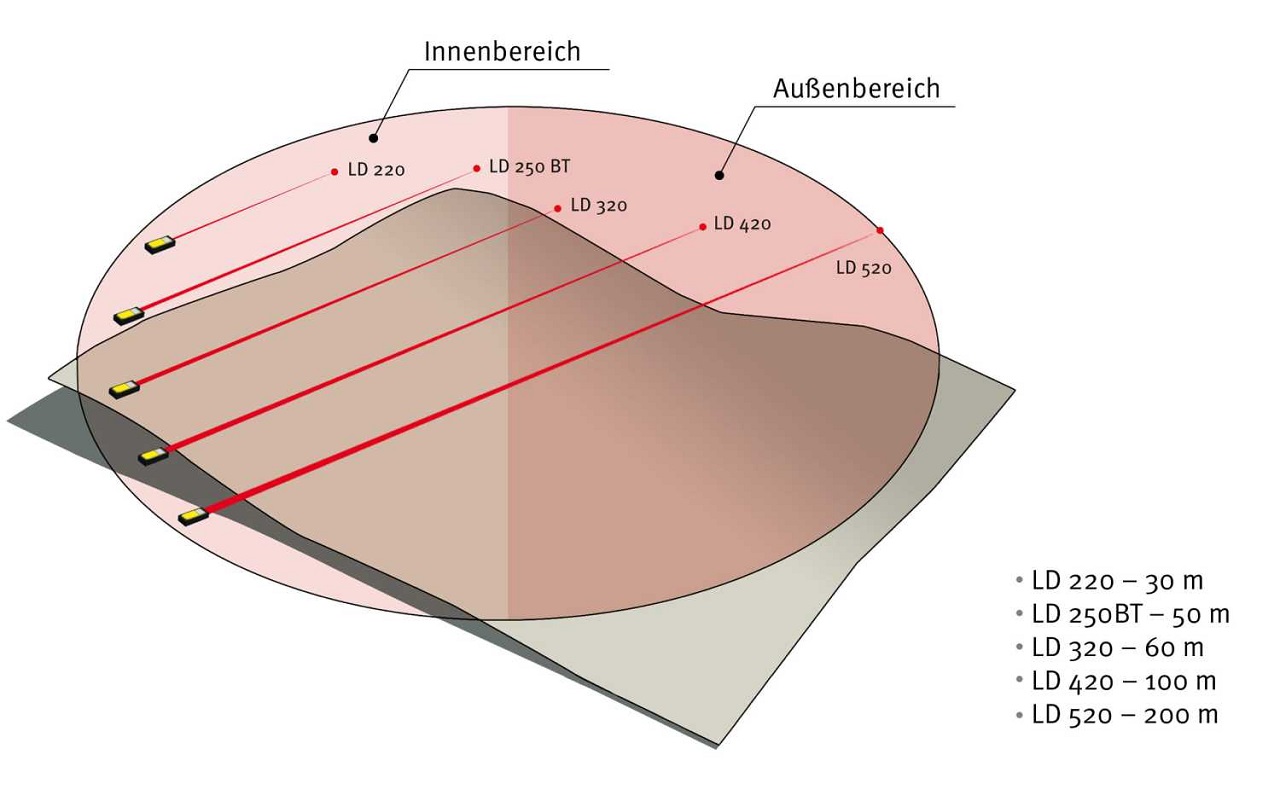 Reichweite und Genauigkeit von Laser-Entfernungsmessern stehen in direktem Zusammenhang mit den Lichtverhältnissen und dem Reflexionsverhalten des Messziels. Um sicherzustellen, dass Reichweiten- und Genauigkeitsangaben auch unter Baustellenbedingungen Gültigkeit haben, ist in der Norm ISO 16331-1 festgelegt, unter welchen Bedingungen die angegebenen Spezifikationen bezüglich Genauigkeit und Messbereich eingehalten werden müssen. Sämtliche Laser-Entfernungsmesser von STABILA erfüllen diese Anforderungen.