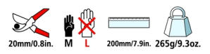- Für alle Fälle sind die Klingen mit einer Kerbe ausgestattet, mit der Eisendrähte durchgeschnitten werden können, ohne die Schneide Ihres Werkzeugs zu beschädigen.